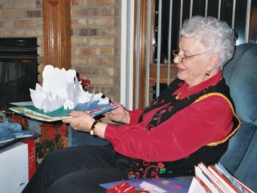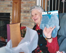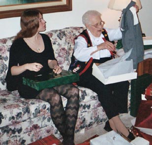 Grandma, Christmas morning. Stocking presents are good.