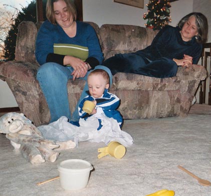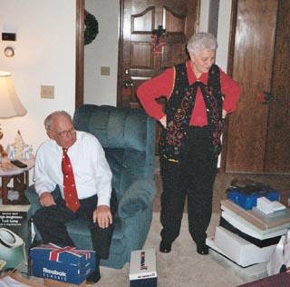 When we're in Omaha, we have Christmas Eve at Grandma and Grandpa's house, and here they are surveying the wreckage.