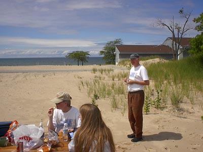 Sarah drove Mark, Grandpa Lyzenga, and me out to Muskegon to meet up with her folks for a lunch picnic.