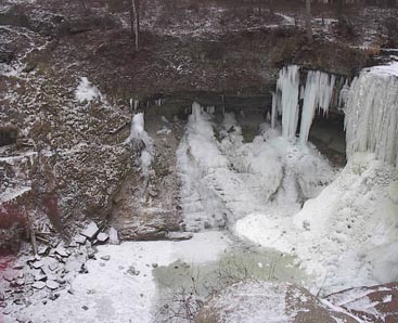 The ice falls are much more extensive than the waterfall. We were impressed.