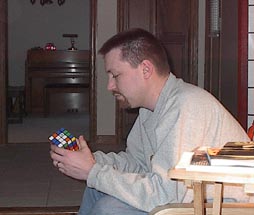 Jeff is still figuring out his 4x4 Rubik's cube.