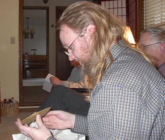 Everyone also got something sparkly. Here is Mark opening his sparkly thing (a sparkly candle and holder).