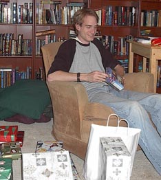 Matt hides behind his book. Everyone got something from Amazon.
