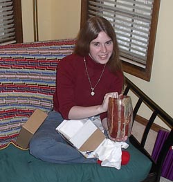 I got an onyx vase. Oooooh. Pretty. Also very chilly: it had been sitting out in Sarah and Jeff's car.