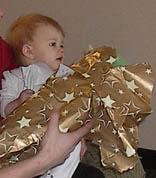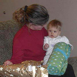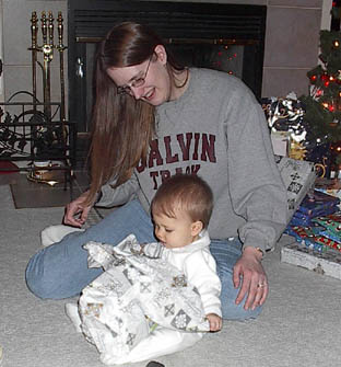 Just think: next Christmas we'll have pictures of her tearing around under her own power! Merry doooooom! Er, I mean Christmas!