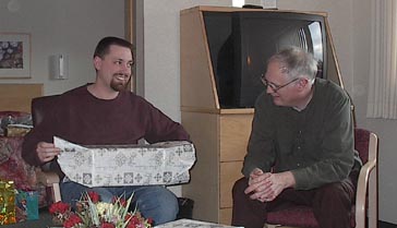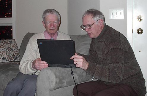Grandpa Lyzenga and Dave, with Grandpa's new laptop.